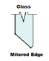 Low cost glass mitering solution with bright finish on flat or miter edge
